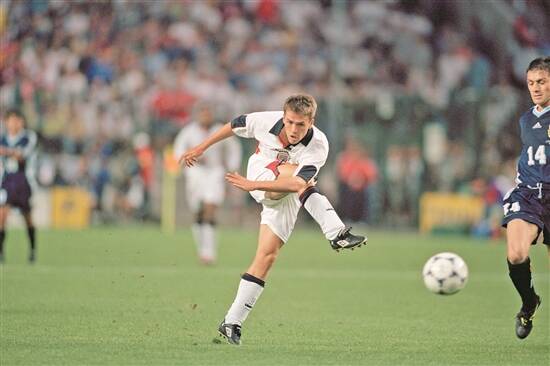 欧文在1998年世界杯对阿根廷的比赛中射门