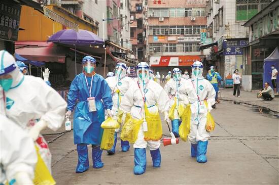“早上好啊,下来做核酸了?不用着急,注意间隔,做好防护。”15日上午,在广州市海珠区后滘村南边街上,湖北小伙彭博开始了一天的志愿者工作。遇到街坊邻居,彭博会主动打招呼,街坊则微笑应答。