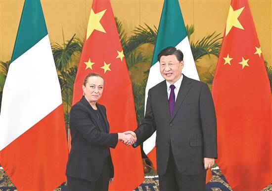 梅洛尼表示,我非常高兴有机会同习近平主席会面。意中都是文明古国,友好交往历史悠久。意方对两国文化和旅游年活动感到满意,愿继续推进两国贸易、文化等领域交流合作。意方不赞同阵营对抗,认为各国应该尊重彼此差异和分歧,加强团结,致力于对话交流,增进相互了解。中国是世界大国,亚洲在全球分量中越来越重,意方希望同中国在联合国、二十国集团等框架下密切协作,更加有效应对当今世界面临的各种紧迫挑战。