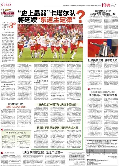 2022年11月17日/星期四/体育新闻部主编/责编 龙希 / 美编 郭子君 / 校对 杜文杰