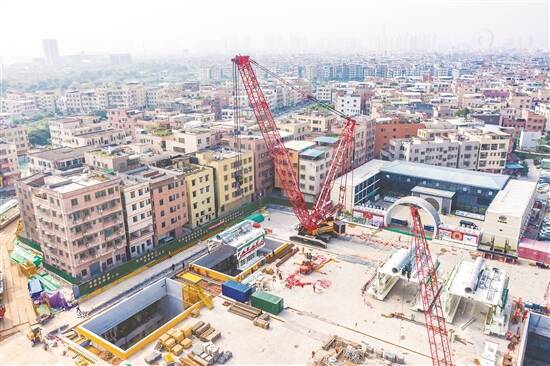总重量约4000吨的广州最大盾构机“大道先锋号”盾构机首件台车顺利吊装下井 通讯员 郑玉茹 摄