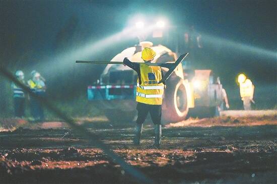 17日,广州(清远)健康驿站项目施工现场,夜幕降临,工人加紧推进场地平整硬化 羊城晚报记者 蔡嘉鸿 摄