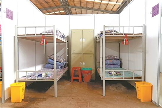 记者在现场的隔离用房样板房看到,房间里除了有床铺、日用品、桌椅等物品,还有独立卫生间,配备有电热水器,可24小时供应热水。项目承建单位中建四局第一建设有限公司党委副书记、工会主席夏小兵介绍,这间样板房是装配式厢房,这种厢房加工、安装方便,能够快速提高施工效率。此外,此次使用的隔离用房密闭性优越,“房间里的独立卫生间,一体化设计,可以有效避免交叉感染”。