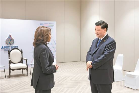 习近平表示,我同拜登总统在印尼巴厘岛的会晤富有战略性和建设性,对下阶段中美关系具有重要指导意义。希望双方进一步增进相互了解,减少误解误判,共同推动中美关系重回健康稳定的轨道。希望副总统女士为此发挥积极作用。