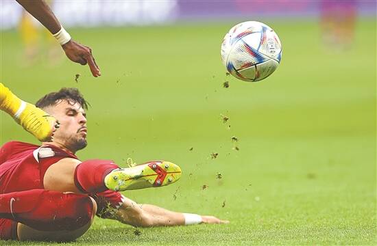 世界杯揭幕战,卡塔尔队球员虽然奋力拼抢,但仍因实力所限惨遭败绩 新华社发