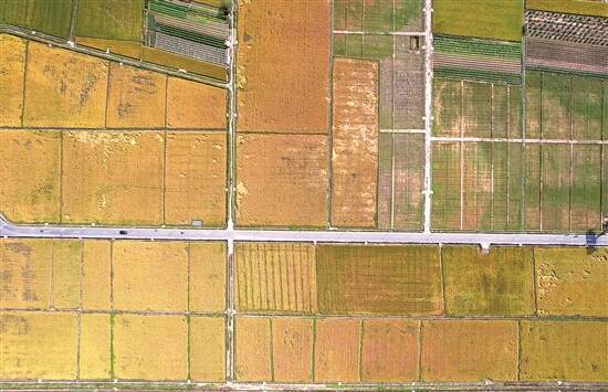 以大地为锦,以五谷为笔,水稻画与美丽乡村互相映衬描绘出一幅“乡村美、丰收喜、粮满仓”的美好景象。