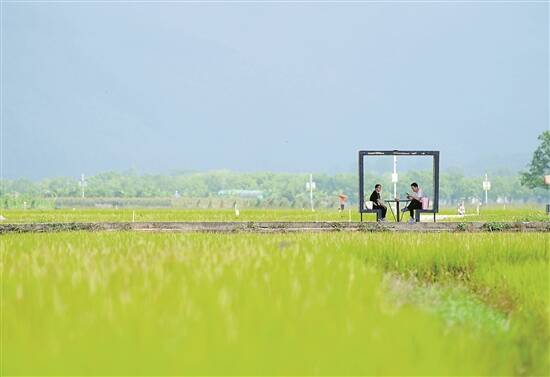 与此同时,广袤的农田,吸引众多周边群众和游客前来打卡。人们或在虫情监测台纳凉、远眺,或与田间彩绘、稻草作品合影,或在金黄稻浪美丽田园风光中游览。随着增城丝苗米公园完工,丝苗米文化展馆的落成,增城的田间地头正成为游客向往的好去处。