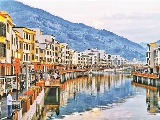 栋栋民居装饰一新,花草树木与潋滟碧波相映成趣,水景廊桥两岸灯火斑斓……华灯初上,双河村的唯美山水夜景呈现于眼前。“去年之前,太阳下山后村里黑灯瞎火,游客来了也不知道带他们去哪玩。”村民李新章说,现在有星级酒店,处处都是小景点,客人来了都不想走。