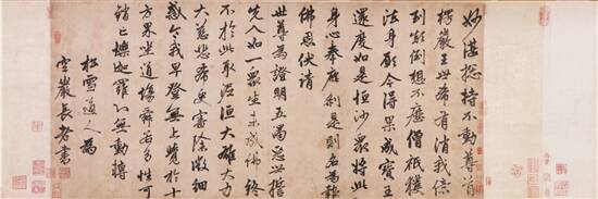 “从《楞严经》可见,他原来有些拙嫩、刻板的书风已跃然而为苍劲与练达。”朱万章特别指出,赵孟頫在世时书名甚隆,求书者接踵而至,故后人所见书迹也有不少为应酬之作,而此卷为空岩长老所书佛经,可见其书风的严谨。