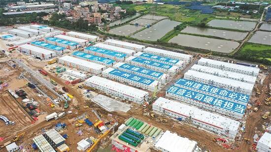 白云神山方舱医院(现“白云区神山应急隔离转运点”项目)总用地面积11.4万平方米,可提供超6500张床位,分为隔离观察区、工作服务区、集中卫生通过区三大区域。