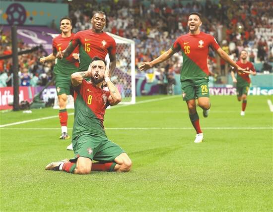 11月29日凌晨,世界杯上演H组次轮小组赛葡萄牙与乌拉圭的焦点战,凭借下半场布鲁诺·费尔南德斯的梅开二度,葡萄牙以2比0战胜乌拉圭,报了2018年俄罗斯世界杯八分之一决赛的“一箭之仇”,提前晋级16强。
