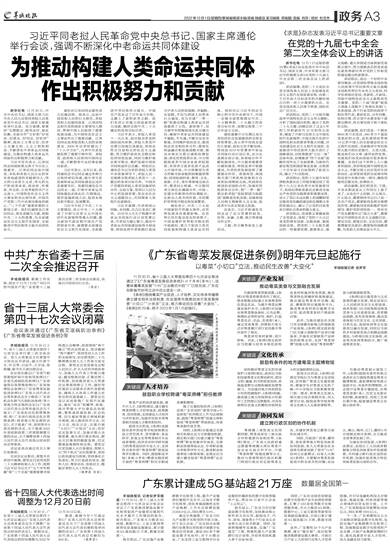 羊城晚报讯 记者侯梦菲报道:11月30日,省十三届人大常委会第四十七次会议分组会议审议了广东省推进制造业数字化转型促进产业链供应链现代化水平提升工作情况的报告。报告指出,广东省大力推进5G网络、数据中心、工业互联网等新型信息基础设施建设,累计建成5G基站超21万座,数量全国第一。