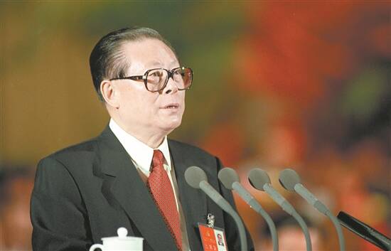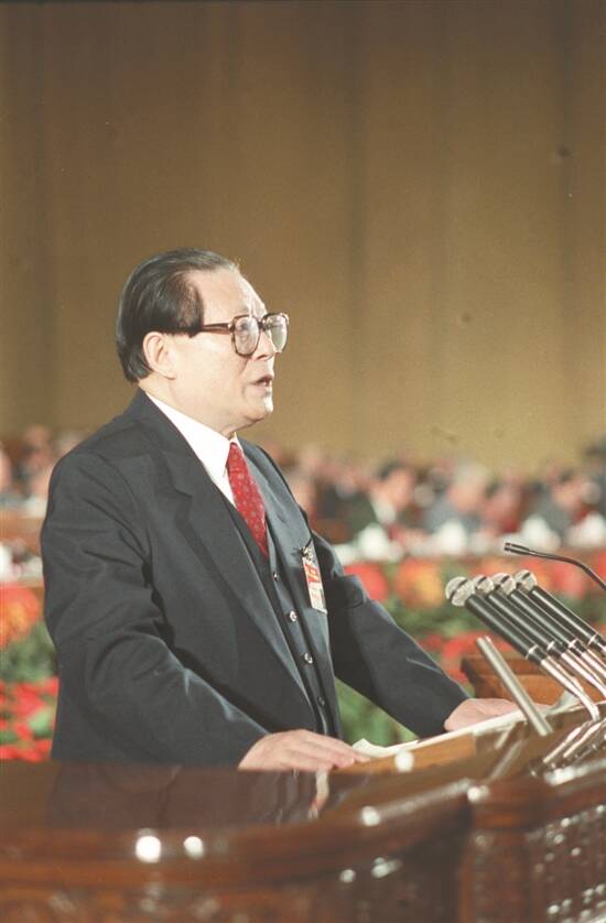 1997年9月12日,中国共产党第十五次全国代表大会在北京人民大会堂开幕。这是江泽民同志代表第十四届中央委员会作报告