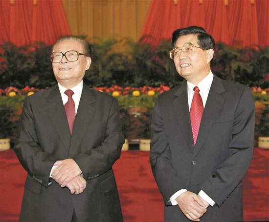 2002年11月15日,江泽民同志、胡锦涛同志在北京人民大会堂亲切会见出席党的十六大代表、特邀代表和列席人员并发表重要讲话