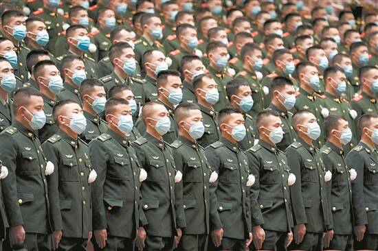 这是出席追悼大会的解放军代表步入人民大会堂大礼堂