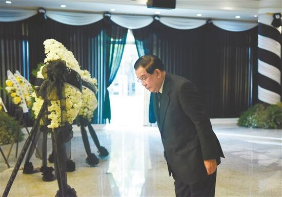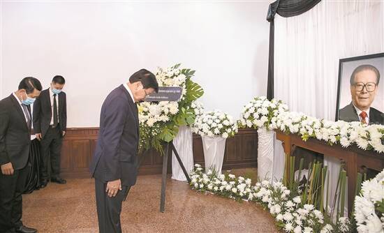 12月5日,柬埔寨首相洪森在中国驻柬埔寨大使馆吊唁江泽民同志