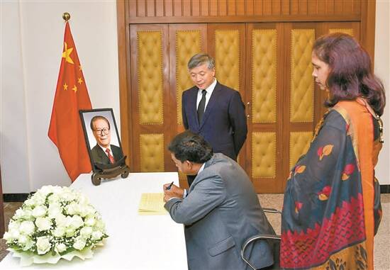 12月2日,斯里兰卡总理古纳瓦德纳在中国驻斯里兰卡大使馆吊唁江泽民同志