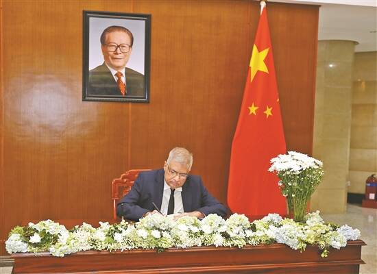 12月2日,斯里兰卡总统维克拉马辛哈在中国驻斯里兰卡大使馆吊唁江泽民同志