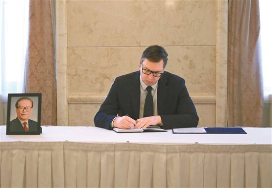 12月3日,塞尔维亚总统武契奇在中国驻塞尔维亚大使馆吊唁江泽民同志