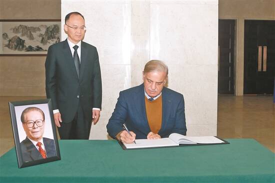 12月1日,巴基斯坦总理夏巴兹在中国驻巴基斯坦大使馆吊唁江泽民同志