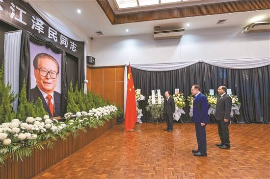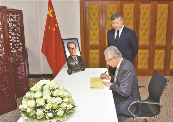 12月2日,毛里求斯总理贾格纳特在中国驻毛里求斯大使馆吊唁江泽民同志