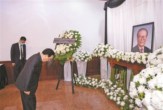 12月5日,老挝总理潘坎在中国驻老挝大使馆吊唁江泽民同志