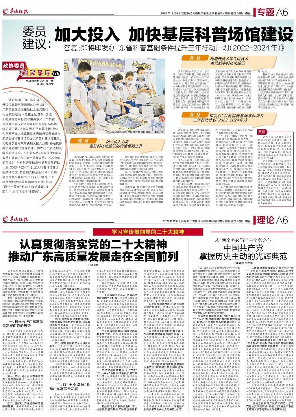 认真贯彻落实党的二十大精神 推动广东高质量发展走在全国前列