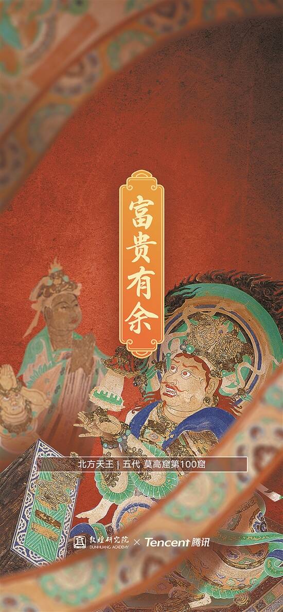 敦煌数字素材库上线当天,平台同步推出敦煌好运系列壁纸,爱好者们纷纷用手机扫出了带有吉祥祝福语的精美手机壁纸