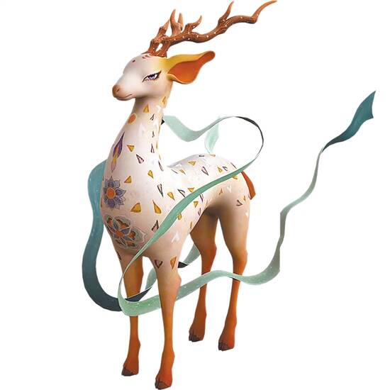 在“共创作品”板块,可以看到许多利用敦煌壁画元素进行二次创作的作品展示,已有不少公司或个人参与创作。例如其中一个九色鹿的三维模型图,就是华为技术有限公司根据莫高窟第257窟鹿王本生故事画中的九色鹿形象而创建的。其他还有一些手绘和动画新作品,国人耳熟能详的飞天、乐舞、莫高窟九层楼等经典敦煌意象,被赋予了各种兼具现代审美的创意,活灵活现,美轮美奂。