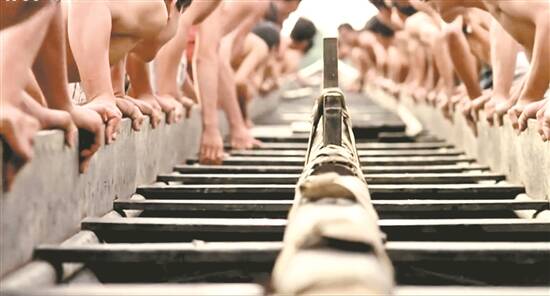 在《赛龙夺锦》里,家乡蓬勃的生命力让龙舟找回创作的意义。影片后段,他在传统广东音乐《赛龙夺锦》的旋律基础上,创作出交响合唱音乐《奋斗就是欢乐》,达成了艺术生命的一次飞跃。“赛龙舟整个过程的仪式感很强,个人融入集体,共同拼搏争取一个荣誉。这正好与龙舟从单打独斗的创作到融入合唱团、与村民共同完成交响合唱音乐的过程相互呼应。”郑华解析。