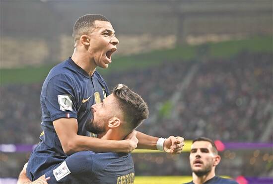 法国胜波兰一战,法国队球员姆巴佩(上)与队友吉鲁庆祝进球 新华社发