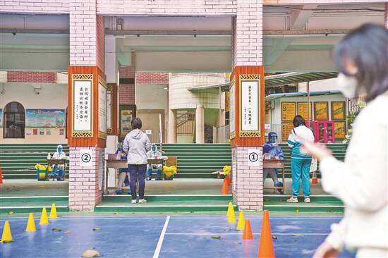 10日下午,广州越秀区某学校核酸检测点,准备复课学生正有序进行核酸检测 羊城晚报记者 蔡嘉鸿 摄