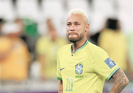 此时看台上的巴西球迷已经红了眼眶,而本定于第五个出场的内马尔甚至没得到主罚点球的机会,他的球队就已经出局。这或许是30岁的内马尔赢得世界杯的最好机会,但他的进球没能帮助球队继续前进。比赛结束后,内马尔颓然地躺倒在草皮上,久久不愿起身,随后更是在老大哥阿尔维斯怀中哭成了泪人。