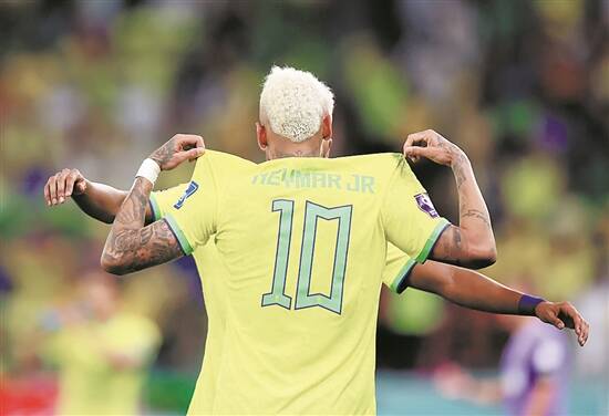 在本场比赛加时赛的上半场伤停补时阶段,内马尔利用一个里程碑进球帮助巴西打破僵局,可惜桑巴军团未能保住胜果,被克罗地亚扳平比分并把比赛拖入点球大战。这是内马尔在国家队的第77个进球,追平排名第一的球王贝利,内马尔代表巴西出场124次,贝利代表巴西出场92次。
