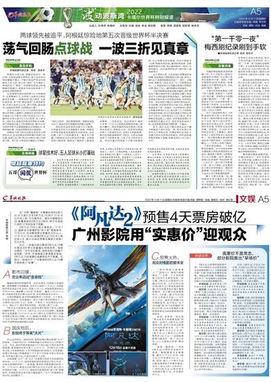 羊城晚报:我发现在广州看《阿凡达2》性价比还是挺高的,特别是12月16日正式上映后,票价并没有比之前的电影有大幅提升。