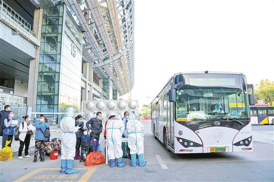 “我已经‘转阴’五天了,一直在等妈妈痊愈后一起出院,今天我们就可以离开啦。”方舱医院门口,李先生带着母亲排队等候转运车辆,即使戴着口罩也难掩笑意:“这段时间医护人员对我们的照顾很周到,他们也都非常辛苦。马上要离开方舱医院了,非常开心!我在方舱住了9天,头发都长了,就想出院了赶紧理个发!”