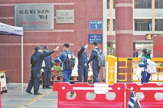 复学复课复耕耘,一寸光阴一寸金。12日,广州市高二、高三年级学生以自愿为原则返校开展线下教学。复课前夕和首日,记者在多所学校采访时看到,师生重返校园再相见,大家的脸上洋溢着笑容。对于学校而言,兼顾教学与防疫、线下与线上是最重要的考量。