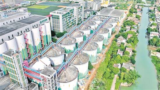 走进园区,一栋栋以麦穗为主题设计的粮食圆筒仓排列整齐,里面存满来自不同产地、不同品类的原粮。在这块占地面积约15万平方米,总建筑面积约19万平方米的园区里,有着立筒仓、浅圆仓、楼房仓、平房仓、低温库、混合仓等多种仓型,总仓容达43万吨。这里,也是广州乃至粤港澳大湾区的粮食安全保障基地。