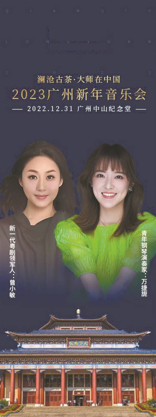在岁末年初之际看一场新年音乐会,是不少广州市民迎接新年的保留节目。今年,随着疫情防控政策的调整,广州多个演出场所逐渐开放,年底的演出市场精彩纷呈。12月31日,“澜沧古茶·大师在中国”2023广州新年音乐会即将在中山纪念堂上演,著名粤剧演员曾小敏、青年钢琴演奏家万捷旎等表演嘉宾登场,与羊城观众共同辞旧迎新。