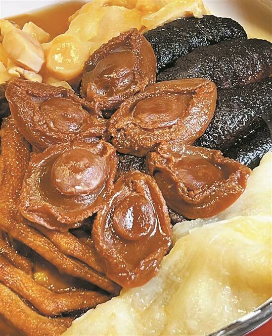一锅热气腾腾的盆菜集合多种食材,鸡肉、鸭肉、鲜虾、鲍鱼、香菇等有序摆放,但它们可不是一锅熟的大杂烩,每种食材在放置前都需要经过不同工序的烹煮。当各种食材被置于盆内后,经过特制高汤熬煮,盆菜内的菜既保留了食材原有的味道,又能吃出高汤熬煮过后的新口味。