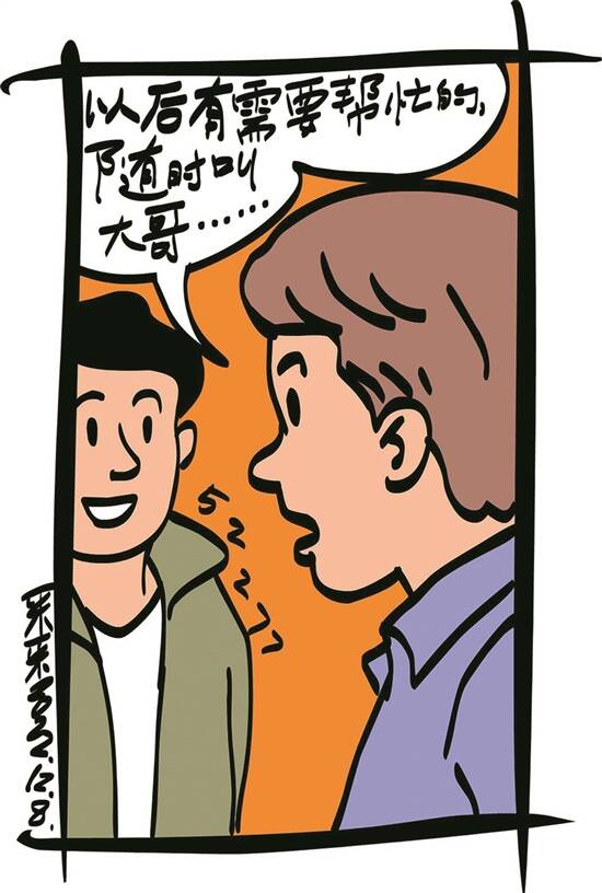 江波把打好的彩票递过来,说:“早上第一次吃你的面,你没收费,现在你也是第一次来我店里打彩票,我也免费。”男老板一听急了:“这怎么行!”江波严肃地说:“怎么不行?就这样,快回去帮你老婆收拾桌子,以后有需要帮忙的话,随时叫大哥。记住,希望在前方,加油!”