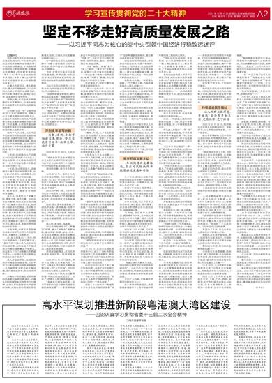 省委十三届二次全会提出,突出深化粤港澳合作,高水平谋划推进新阶段粤港澳大湾区建设。学习贯彻全会精神,我们要牢牢抓住粤港澳大湾区建设这个“纲”,统筹推进深圳先行示范区和横琴、前海、南沙三大平台等重大战略重大平台落地落实,牵引全省高质量发展,推动广东现代化建设。