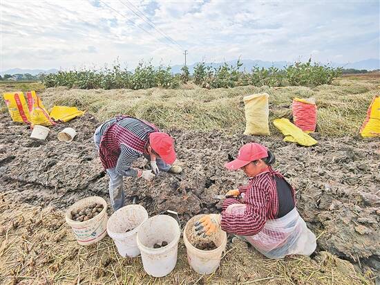 羊城晚报讯 记者张文,通讯员杨瑞莲、杨兰摄影报道:过了二十四节气中的大雪,粤北地区迎来了马蹄开挖的时节。韶关市始兴县顿岗镇有“马蹄之乡”的美誉,近日记者在当地走访时发现,田间地头随处可见村民们正趁着冬日暖阳翻挖、捡拾马蹄的身影,田野间呈现出一派繁忙的丰收景象。