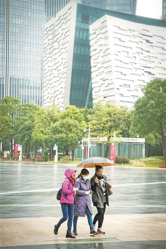 16日,广州花城广场,市民穿上棉袄出行 羊城晚报记者 贺全胜 摄