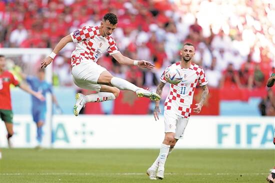 小组赛摩洛哥对阵克罗地亚,克罗地亚队佩里西奇(左)传球 新华社发