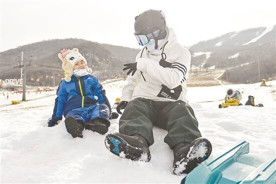 小朋友跟随爱好冰雪运动的家长来到吉林万科松花湖度假区,在冰天雪地中体验“冰雪大冒险”的冬日快乐
