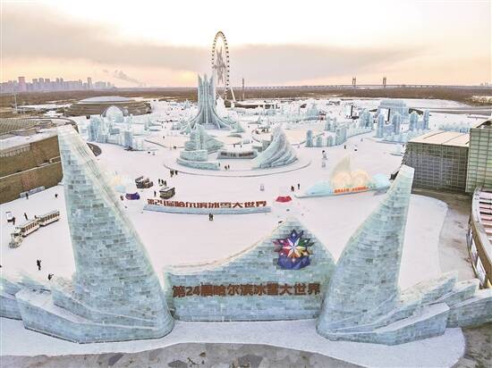 本届冰雪大世界引入“冰雪+”概念,通过“冰雪+创意”“冰雪+数字”“冰雪+艺术”“冰雪+体验”折射哈尔滨冰雪经济60年成就。
