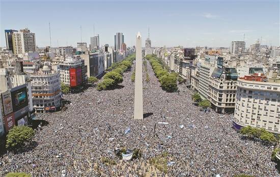 天亮不久,球迷们就开始汇集到布宜诺斯艾利斯市中心七月九日大道上的方尖碑周围。按照此前公布的庆祝活动安排,得胜归来的阿根廷队将乘坐敞篷大巴,巡游阿根廷首都这条标志性的大道。