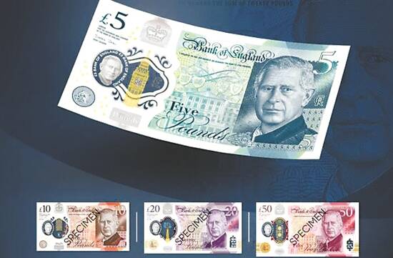 英格兰银行当天发布的图片显示,查尔斯三世肖像出现在4种面值的新版纸币正面,未戴王冠。此外,在纸币用于防伪的透视水印处,还有一个较小的国王肖像。