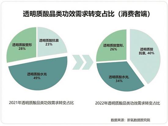 1、功效需求层面,从透明质酸补水向抗衰比重倾斜;